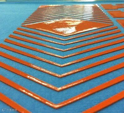 首先要开一个铜板模型图案出来,然后将面料粘合上衬布,进行高温压烫。