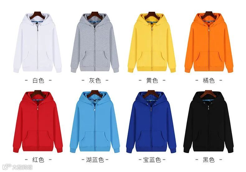 款式又分为带帽的和带拉链的。带拉链可以增加卫衣的使用场景,一旦我们感觉到有点热的时候可以把拉链拉开。