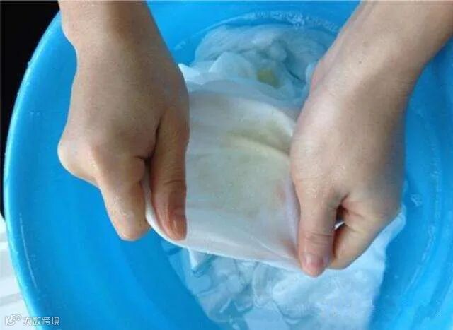8、加脱脂牛奶洗白。在洗白色丝织物前用脱脂牛奶泡一下,或在最后一次漂洗时,在水里加2汤匙牛奶,可保持白色丝织物的本色,防止其变黄。
