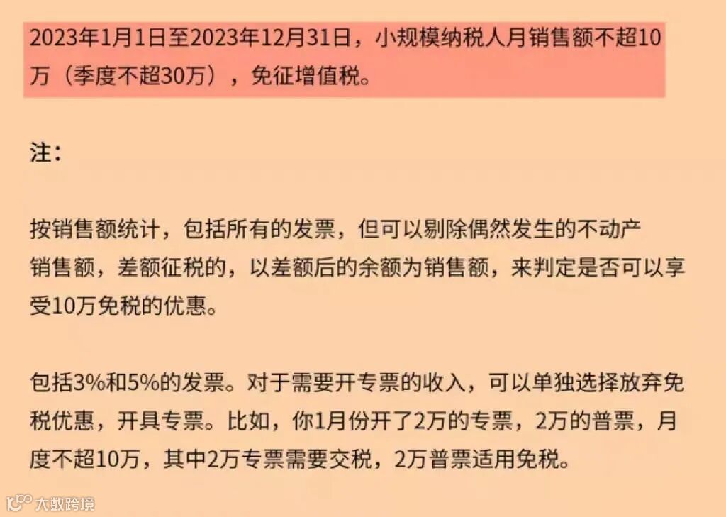在这里需要提醒大家的是,虽然小规模纳税人3%免税的优惠2023年没有了,起征点也从原来的月度15万降低到了月度10万,但是却可以开1%征收率的专票了,对于纳税人而言,也全非都是坏事。