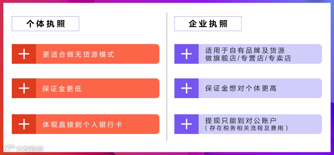 便宜:企业营业执照的保证金是个体营业执照的2倍;比如个体选择服装类目,保证金是2000元;企业营业执照该类目就是4000元;