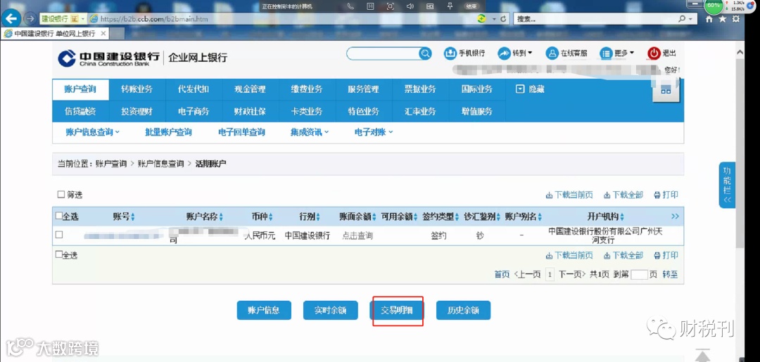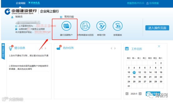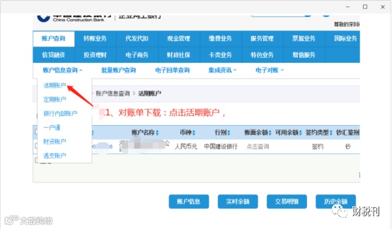 1.登入建设银行网上银行首页,点击【账户信息查询】;