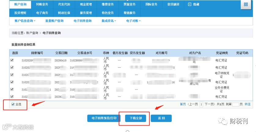 5.下拉页面到最底部,点击【下载全部】并选择【Excel下载】。