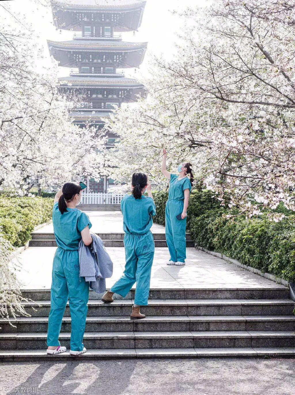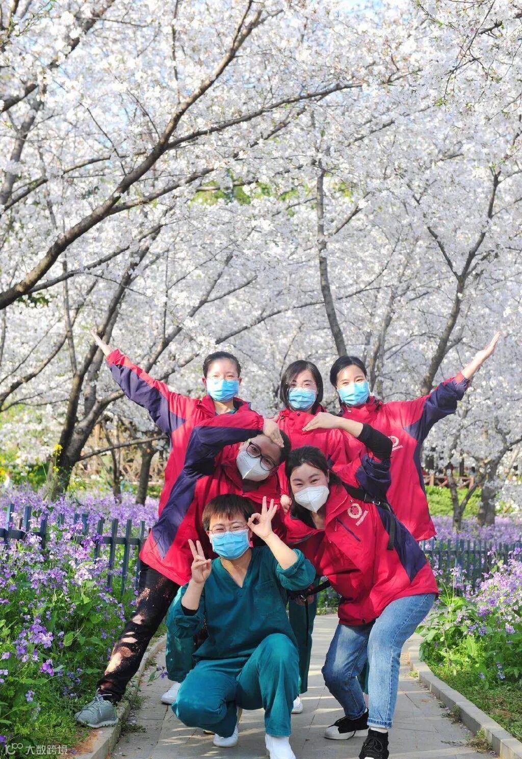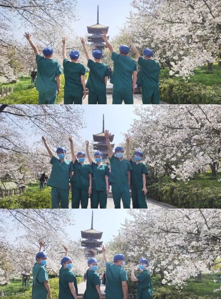 3月,武大的樱花开了!近日,部分支援武汉的医护人员趁返程来到樱花园赏樱,大家留下了这些美美的瞬间~