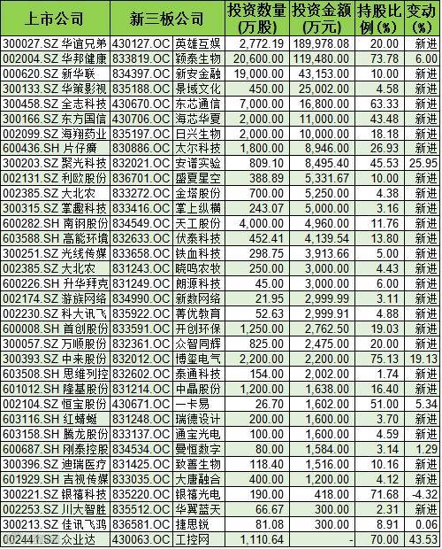 有26家A股公司属于首次投资新三板公司,其中有4家跻身为控股股东,分别是全志科技、东方国信、聚光科技、众业达。