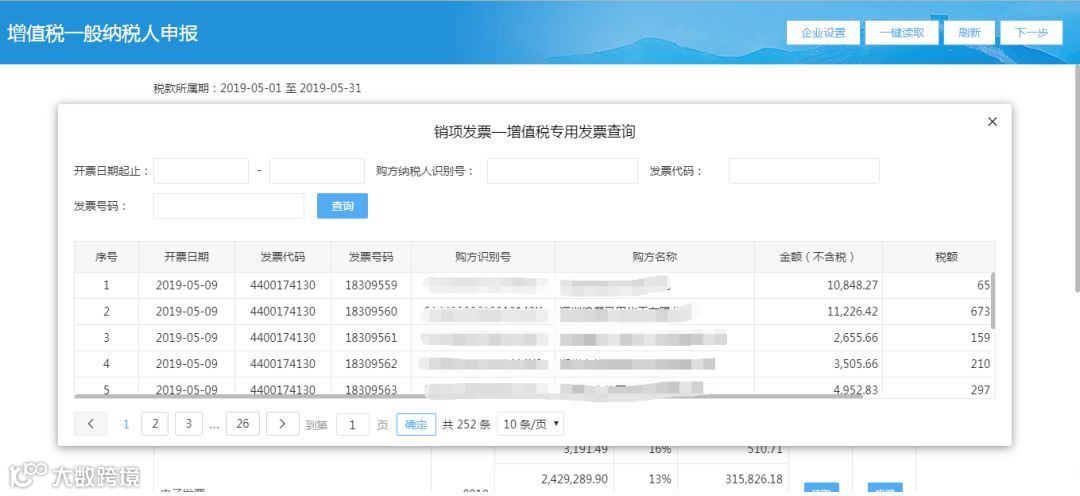 3、进入发票汇总界面后,系统自动获取当期所有的进销项发票数据,纳税人可在发票汇总页面核对当期发票数据;