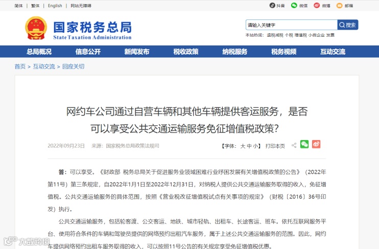 一、根据《财政部 税务总局关于促进服务业领域困难行业纾困发展有关增值税政策的公告》(财政部 税务总局公告2022年第11号)规定:“自2022年1月1日至2022年12月31日,对纳税人提供公共交通运输服务取得的收入,免征增值税。公共交通运输服务的具体范围,按照《营业税改征增值税试点有关事项的规定》(财税〔2016〕36号印发)执行。在本公告发布之前已征收入库的按上述规定应予免征的增值税税款,可抵减纳税人以后月份应缴纳的增值税税款或者办理税款退库。已向购买方开具增值税专用发票的,应将专用发票追回后方可办理免税。”