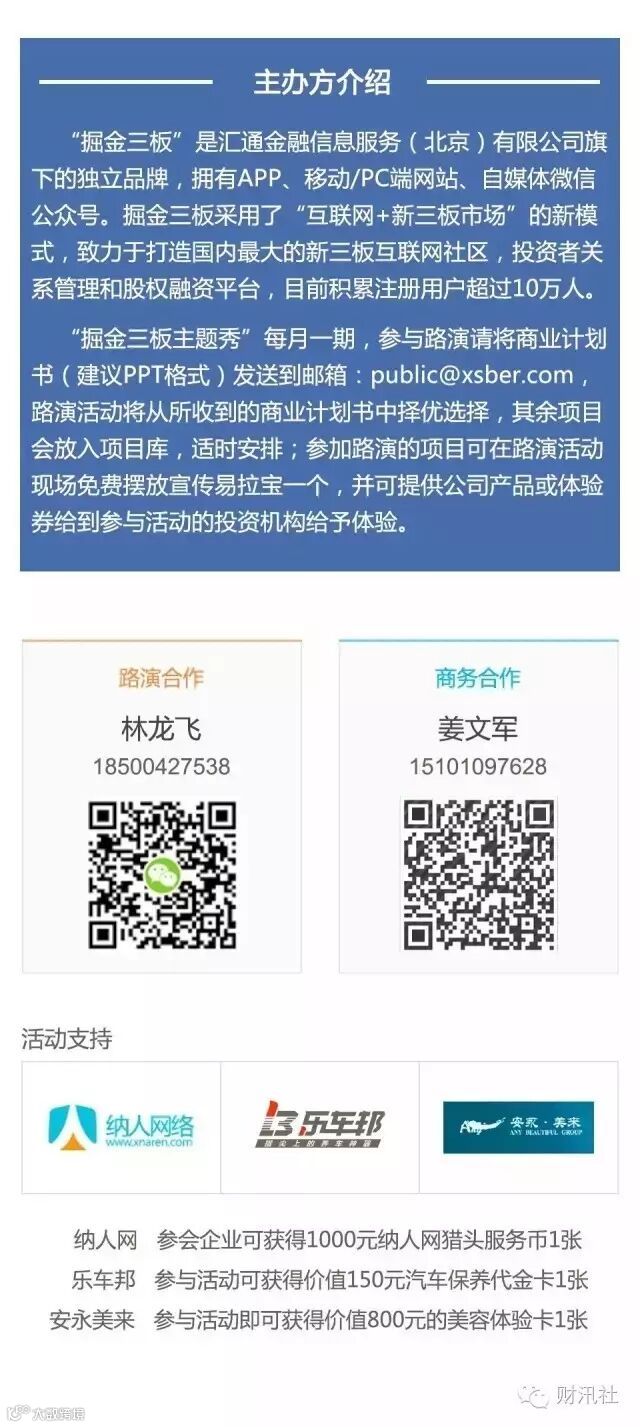 国内首家新三板投融传播服务连接平台-"财汛社APP"官方订阅号。每天发送独家原创文章、新三板资讯,致力于传播新三板投融资信息,为投资机构及投资者发掘优质企业,打造中国新三板投融投融传播服务连接第一平台!