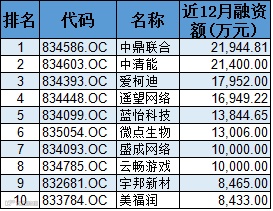 僵尸股融资额排行见下表。