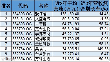 从近两年平均营收看,平均值为1.72亿元,有46家公司年均收入超过1亿元。爱柯迪以13.82亿元继续领跑。