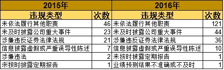 从违规类型看,无论去年还是今年,都主要集中在未依法履行其他指责、未及时披露公司重大事件、涉嫌违反证券法律法规、信息披露虚假或严重误导性陈述这四项里。