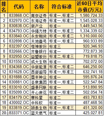 截至7月11日,创新层公司近60日平均市值超过100亿元的有5家,最高的是南京证券158.07亿元,其次是东海证券154.5亿元和新产业144.95亿元。