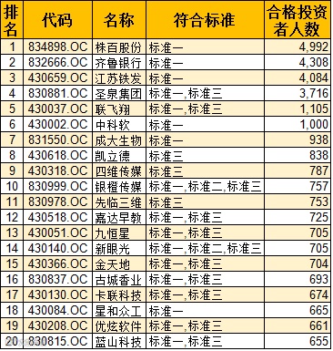 按照合格投资者人数排名,有6家公司投资者人数超过1000人,最多的是株百股份4992人,第二是齐鲁银行4308人,第三是江苏铁发4084人。三者都是协议转让,但众多的投资者身在其中使其交易也相对较为活跃。