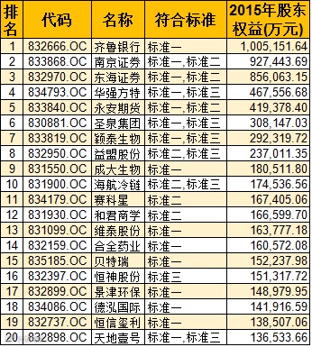 以2015年股东权益计,前三名依次为齐鲁银行100.52亿元、南京证券92.74亿元、东海证券85.61亿元。