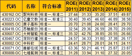 我们以更严格的条件看净资产收益率(ROE),连续五年ROE都超过20%的企业只有以下9家,这些即使放到沪深市场也是属于非常优质的企业。其中聚利科技、原子高科每一年的ROE都比上一年高,表现十分稳健。