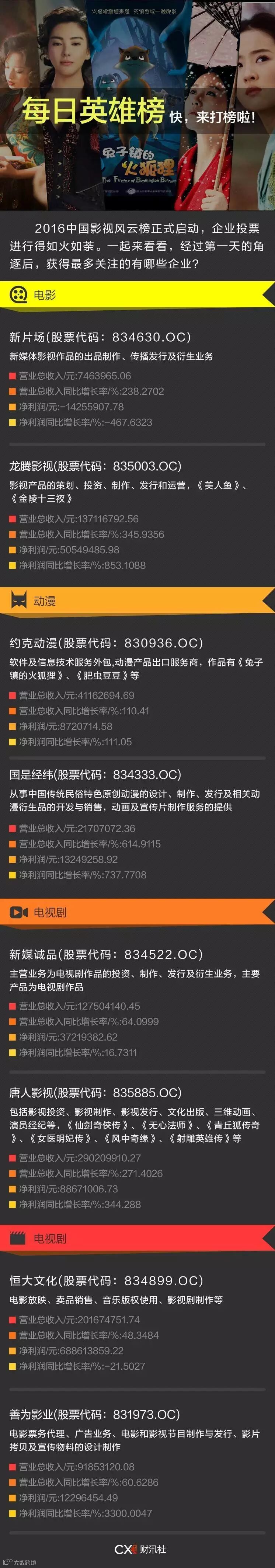 昨日,由财汛社和掘金三板发起的2016中国影视风云榜评选活动正式启动了,不到24小时的时间,就获得了各界人士的关注和支持,社掌我看着后台的留言,都不知觉地被大家的热情所感动(拭泪中)。
