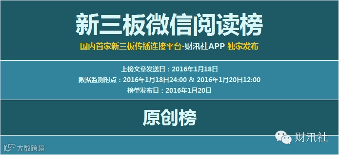 今天的《新三板微信阅读榜》上榜文章是上榜公众号于2016年1月18日发送的文章。