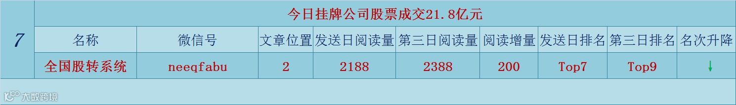 每天发送三板行情、大咖洞见、独家原创榜单