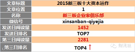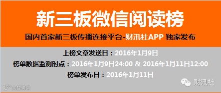 今天的《新三板微信阅读榜》上榜文章是上榜公众号于2016年1月9日发送的文章。