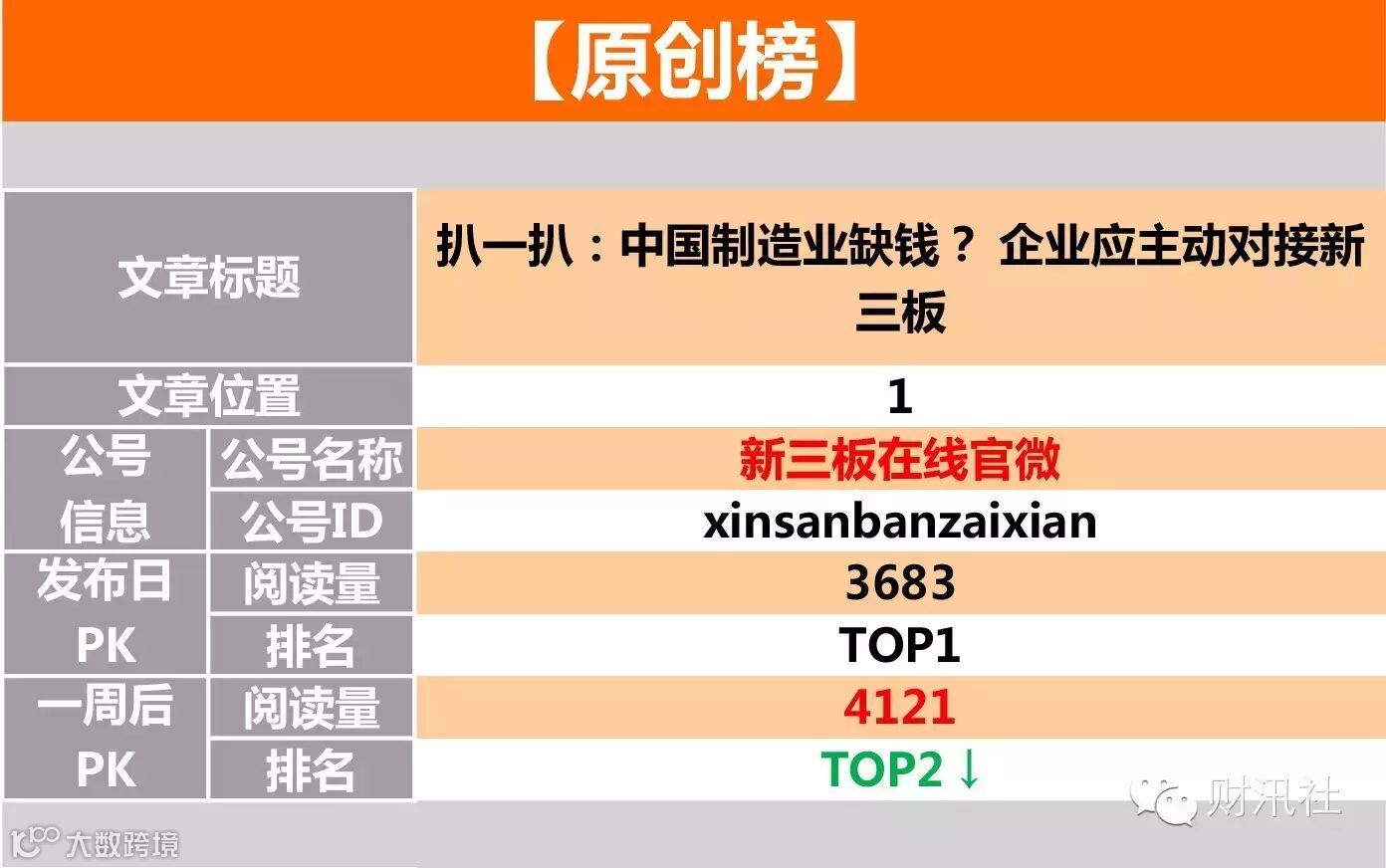【原创榜】“新三板在线官微”榜首