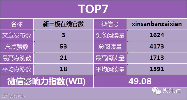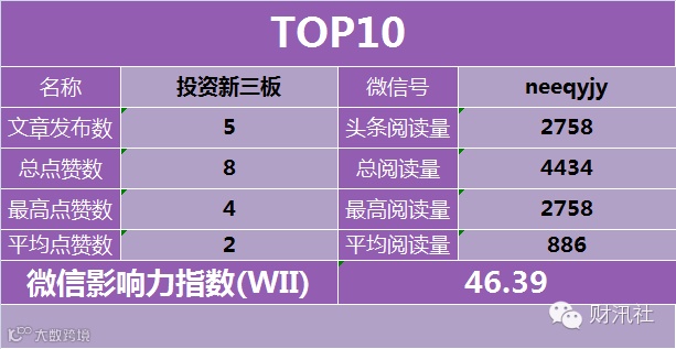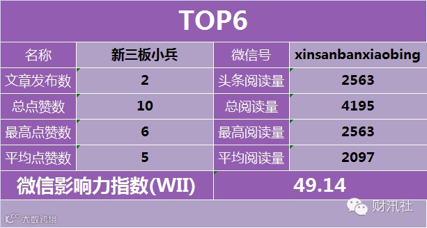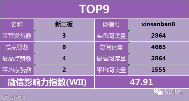 9、微信影响力指数(WII):根据公众号的头条阅读量、总阅读量、最高阅读量 、平均阅读量、总点赞数、最高点赞数、平均点赞数等多项公开数据,进行指数加权运算得出,科学全面的反映公众号综合价值的一项指标。