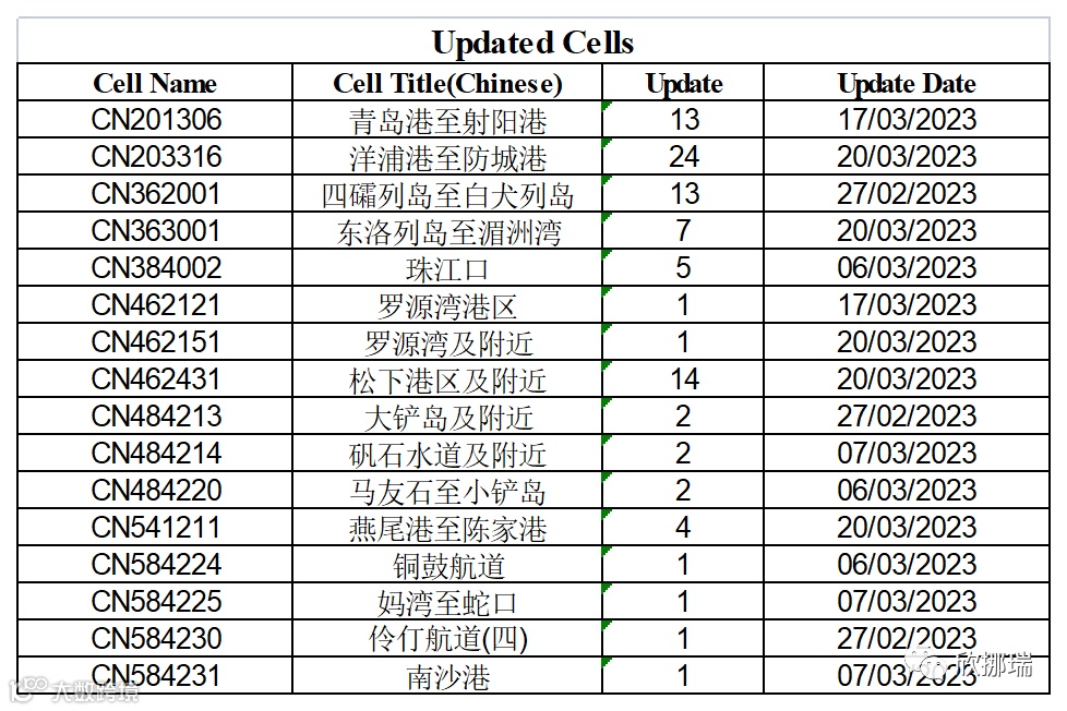 2023年3月29日星期三(2023第13期),海图数据变化如下: