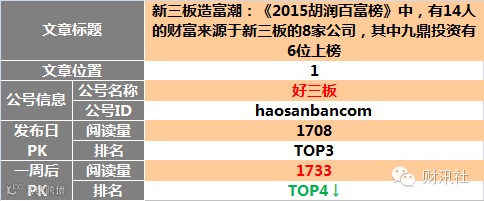 【转载榜】“新三板在线官微”榜首