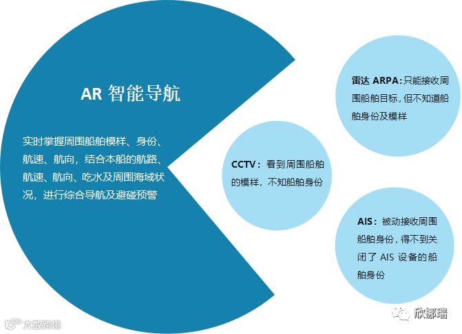 欣挪瑞在原有电子海图基础上新增AR实景功能,利用增强现实技术使视频画面中目标船舶信息更加具体显化,保证船员能够获得清晰直观的视觉信息。同时,可通过实时监测水面安全状况,获得增强现实的实景显示画面,对水面船舶进行广泛而准确的实时监控。同时该系统具有危险碰撞的预警和提供辅助驾驶决策信息功能,最大限度避免主观判断失误造成的海事事故,减轻驾驶员的工作负担和强度。