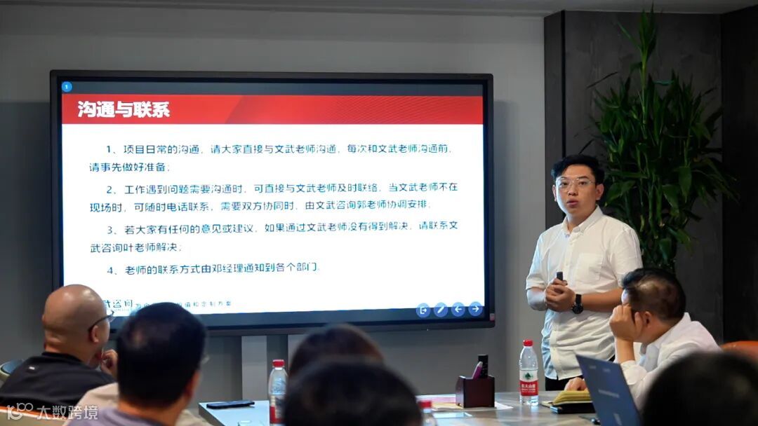 文武咨询郭老师随后登台,用 5 分钟“快、准、狠”地梳理项目组入驻安排及欧蒂尼团队需配合事项,任务、节点、责任人一一对应,确保“今天有方案,明天见行动”。