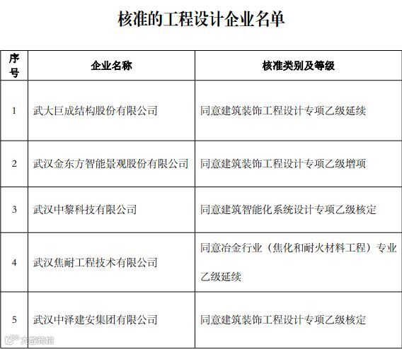 5月27日,湖北住建厅发布了关于公布核准的工程设计企业、工程监理企业、工程造价咨询企业名单的公告,具体情况如下。