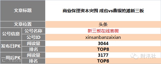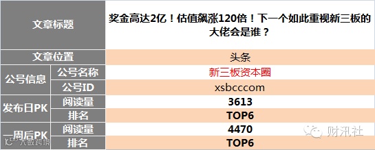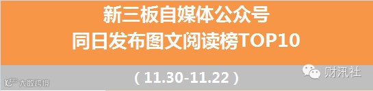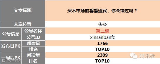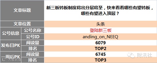 本榜单由"财汛通数据业务运营支撑中心"提供技术支持,综合参考"新榜"、"新媒体指数"、"爱微帮"、"云堆新媒"等新媒体数字化管理平台数据得出。目前,本榜单仅对可获知的新三板自媒体公众号进行数据对比,如有更牛掰的公众号图文未列入榜单,请与财汛社运营团队(社掌)联系。