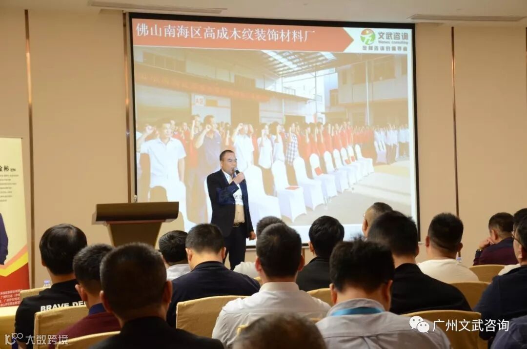 佛山三高木纹集团胡董事长分享了文武咨询为集团旗下佛山高成木纹后台升级的效果。他认为文武老师通过一年的后台升级提升了高成团队管理水平,2018年集团三个分公司中文武咨询服务过的高成木纹工厂各项数据指标及管理提升效果最好,通过一系列准时交付解决了工厂库存场地不足、产品质量不高、生产效率不高等诸多问题。