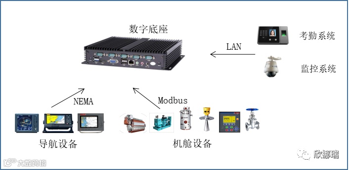在接入设备量较少的情况下,可使用单台数字底座,通过配置串口或网口接入各类船端设备,采集设备的相关数据。