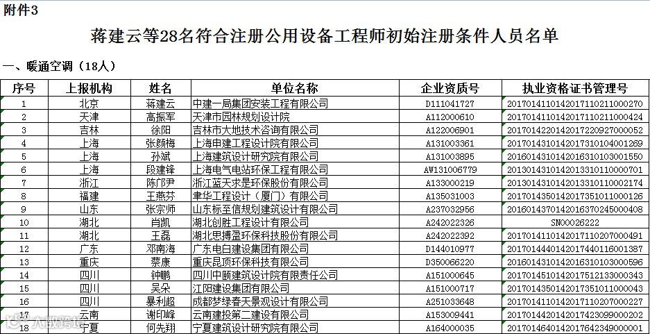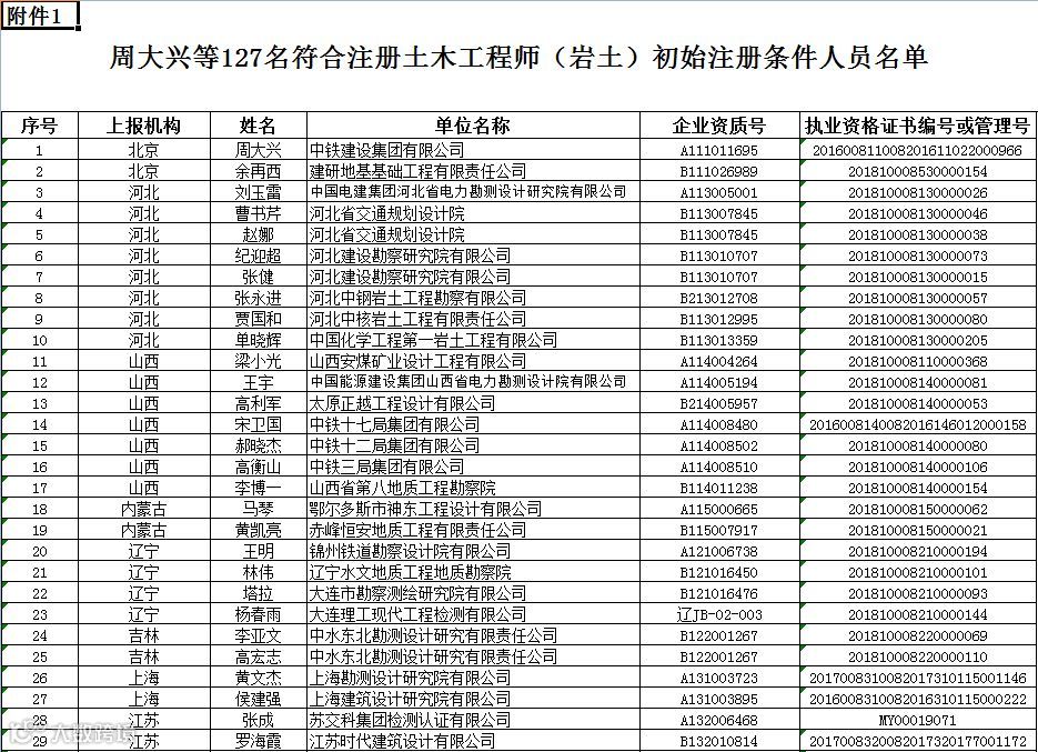 6月4日,住建部发布了关于2019年第十一批申请勘察设计注册工程师初始注册审查意见的公示,具体情况如下。