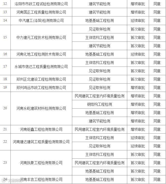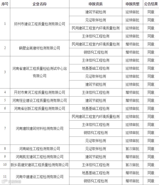 5月29日,河南省住建厅关于核准2019年第三批建设工程质量检测机构资质名单的公告,具体情况如下。