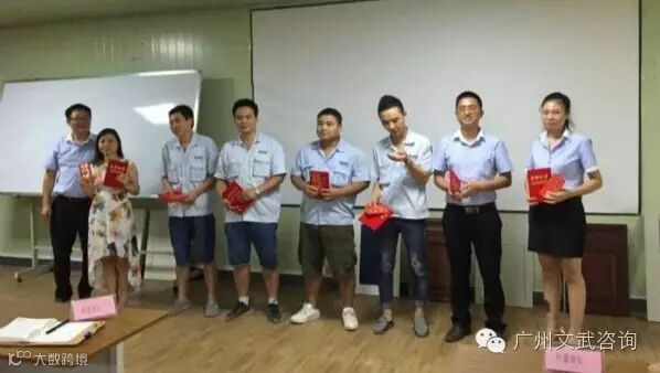 项目组组长伍老师在讲话中对下阶段公司要持续进行的工作进行了介绍。他指出,管理规范化是一个长期的工作,也是全体诺贝尼成员共同努力的方向,今后在工作中和运营管理上,要做到坚持原则不放松,坚持绩效贴合公司运营情况不放松,坚持执行与强有力的执行不放松。伍老师把7个月来文武咨询项目组导入的资料方案整体汇编移交给诺贝尼公司蔡董事长,蔡董事长代表诺贝尼公司向项目组发放了奖金。