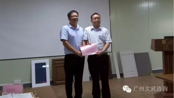 广州文武咨询公司董事长叶淦彬发表了重要讲话,叶董回顾了在项目推行过程中,诺贝尼全体成员对于公司决策的大力支持,对诺贝尼全体成员表示感谢!并对未来企业团队的工作提出了中肯的建议,希望大家坚持文武老师的精神、坚持文武管控系统体系,诺贝尼公司董事长蔡华宝先生向广州文武咨询董事长叶淦彬先生授予感谢锦旗。
