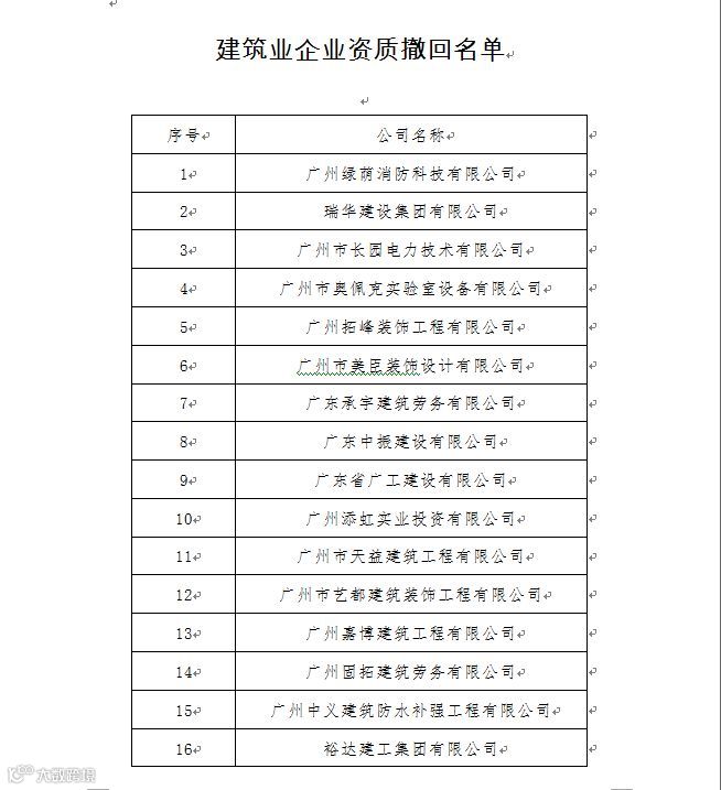 5月14日,广州住建局发布了关于2018年度建筑业企业资质“双随机一公开”监督检查的情况通报,其中有54家企业被注销资质,我们知道资质申请通过是一个很繁琐的过程,那这54家企业为何被注销资质呢,请往下看。