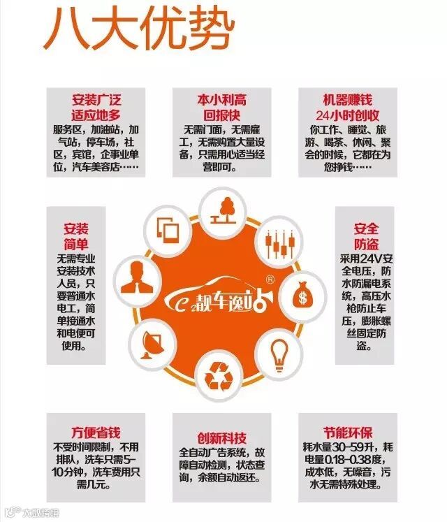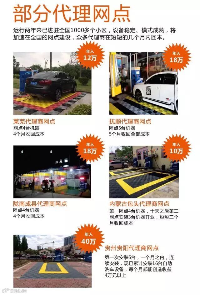 以县区为网点,通过区级代理商在全国近3000个县区逐步铺设5万个以上自助洗车网点,每个网点发展最少覆盖100台车作为会员,靓车逸站将拥有500万以上活跃会员服务数千万车主。