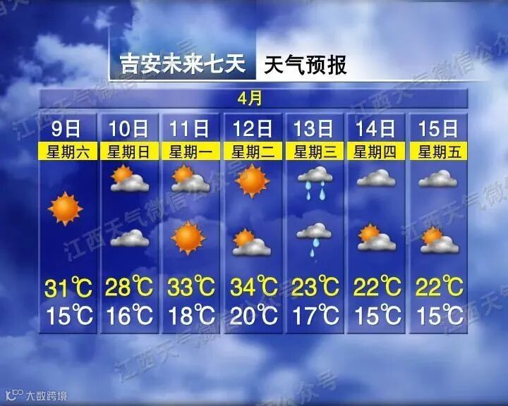 4月8日起,江西晴暖持续,晴朗升温是主旋律,南昌等地最高温超30℃,其中,上饶、吉安最高气温达34℃。