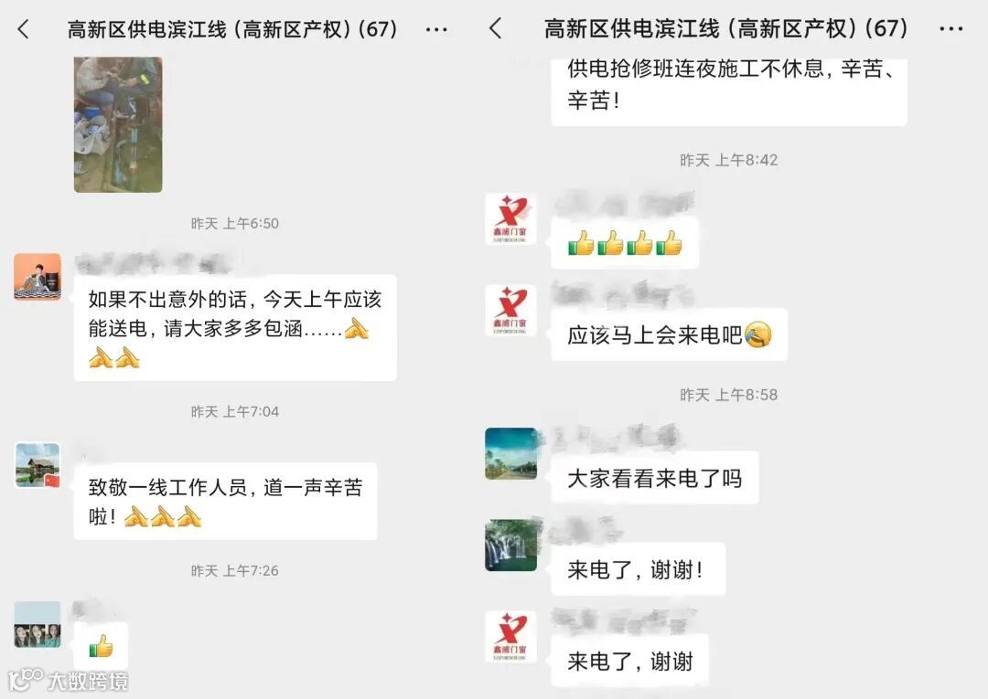 针对园区企业需要同步用电恢复进度的情况,及时通过微信群等渠道向相关园区企业反馈最新的抢修进度,为企业生产做好相关预案。