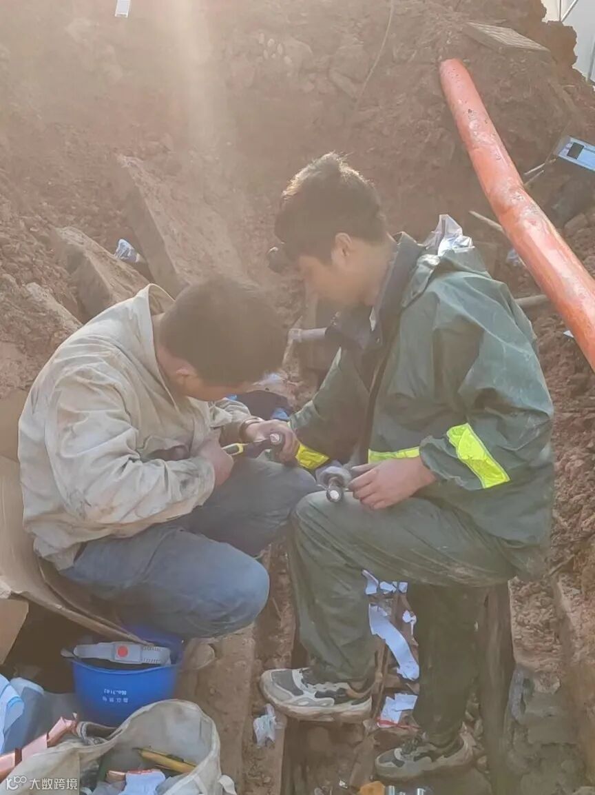 针对供电公司采购抢修材料及机械设备需要一定时间的情况,立即与附近由合盛公司建设的高端项目协调,借用抢修工具、机械挖机等配合现场抢修开挖作业。