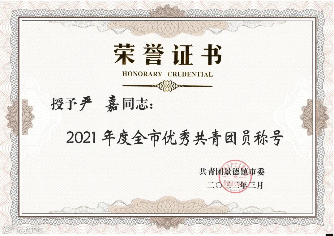 荣获“全市优秀共青团员”称号