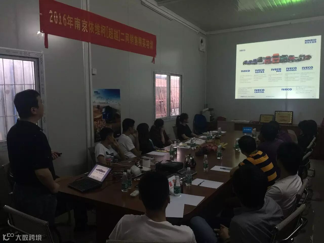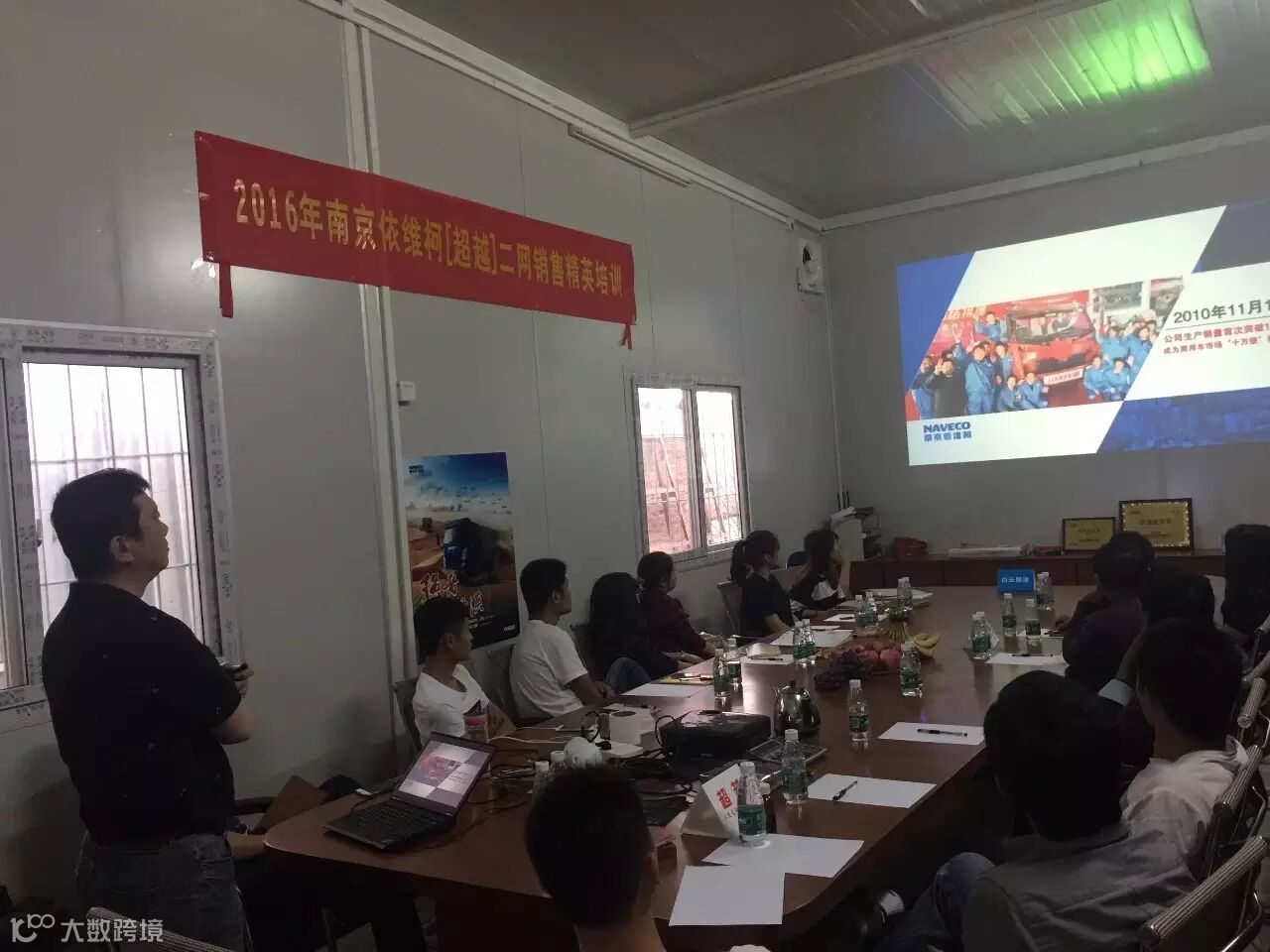 会议在下午4点开始,首先播放了南京依维柯超越的宣传资料,胡总讲解了南京依维柯超越高端轻卡文化传承、新产品及产品优势。