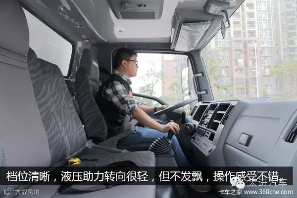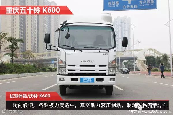 庆铃K600在操作上沿袭了庆铃的风格,各个踏板及档杆的操纵力恰到好处,档位清晰。由于采用的是真空助力液压制动,制动力的线性不错,比较平稳,在标载状态下没有站不住的感觉。液压助力转向,力度较轻,指向性很好,在高速上80公里行驶时没有发飘的感觉。