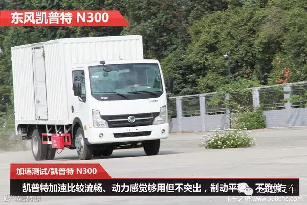 东风凯普特N300搭载排量为3.0升的ZD30发动机,最大功率140马力,最大扭矩280牛米,匹配ZF5速变速箱。在测试中,该车的0-60公里加速时间为11.06秒,加速距离为116.5米。在紧急制动测试中,该车基本没有跑偏现象,这出乎了小编的意料。