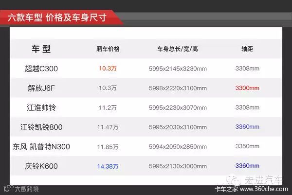 这一轮需要指出的是,超越C300货厢采用的是复合板的材料,所以价格方面比其他五款车的铁制货厢贵上一倍。如果超越C300采用相同材料,它的整车报价将会低于10万块。