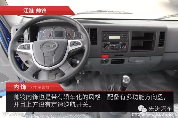 江淮帅铃 多功能方向盘设有定速续航