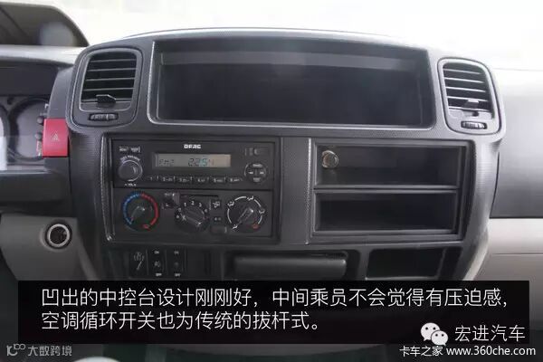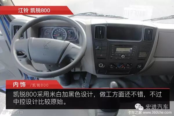 江铃凯锐800座椅舒适度不错,软硬适中,支撑也不错,各开关及档杆操作灵活轻便。仪表盘同样简洁易读,标配冷暖空调,并且两侧均有冷暖杯架。其中凯锐800标配电动车窗,并且驾驶位车窗带有一键上下功能,在实际使用中比较方便。另外还配有倒车雷达,驾驶室隔音做的很好,整体舒适性非常不错。