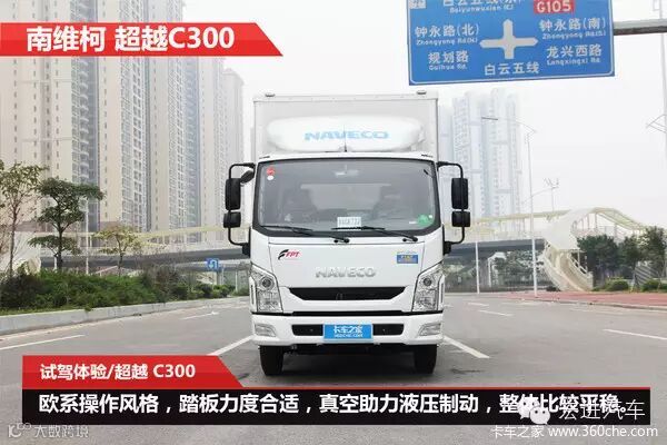 南维科超越C300,在操作上非常轻便,欧系的驾驶风格非常明显。各个踏板的操作力度到位,档杆的操作也很轻便,方向盘更粗壮,握住的感觉非常舒服,液压助力转向、灵活、准确。真空助力液压制动,后桥带有感载比例阀,无论在空车还是载重的情况下,都表现得十分平稳。从实际驾驶感受来说,C300的操作感受优于庆铃。